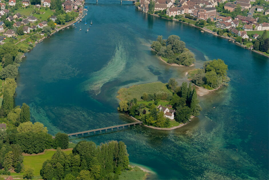 The (pre)historical importance of the area around the Lake Constance outflow is evidenced by the numerous archaeological sites from the late Ice Age to the day before yesterday. In addition to the waterway, various Rhine crossings, including a bridge over Werd Island in Roman times, are of geographical importance for transport.