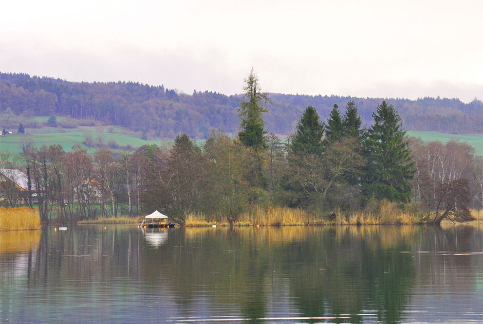 The small island in Lake Nussbaumersee consists of a series of pile-dwelling settlements, dating back to a period from the Pfyn Culture to the early Bronze Age. Towards the current borders of the island layer sequences of more than 2m in thickness have been preserved. Archeological research has been conducted on the layers via a series of cuts and drillings. The neighbouring peninsula Horn next to a pit house from the corded ware period also offers a large settlement from the latest Bronze Age (870-850 BC). It contained roughly 100 log houses. Parts of the area were used for a settlement in the early Iron Age again.