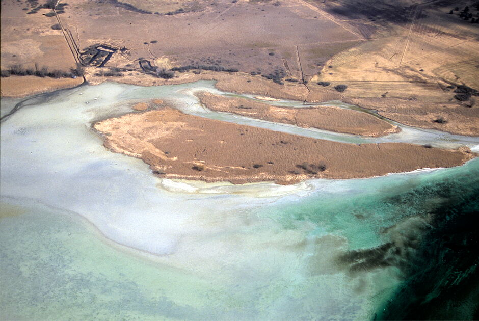 Aerial view of the Wollmatingen-Langenrain site northwest of thereed island (bottom left) © O. Braasch / Landesamt für Denkmalpflege im Regierungspräsidium Stuttgart (LAD)